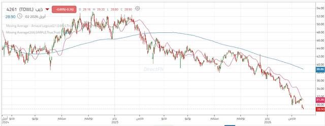 سهم "ذيب" يكسر قاعه التاريخي ويواصل النزيف, اليوم الخميس 2 أبريل 2026 12:30 مساءً