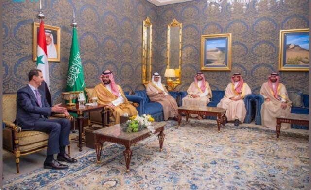 والتقى ولي العهد، الرئيس بشار الأسد، رئيس الجمهورية العربية السورية، وذلك على هامش اجتماع الدورة العادية الثالثة والثلاثين لمجلس جامعة الدول العربية على مستوى القمة المنعقد في مملكة البحرين.