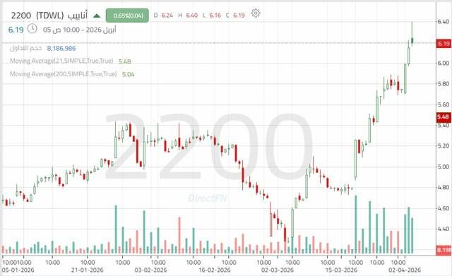 سهم "أنابيب" يختبر مستوى نفسياً هاماً مدعوماً بإشارات فنية إيجابية, اليوم الأحد 5 أبريل 2026 11:40 صباحاً