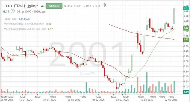 سهم "كيمانول": إشارات فنية داعمة لاستمرار الحركة التصحيحية الصاعدة, اليوم الأحد 5 أبريل 2026 11:40 صباحاً