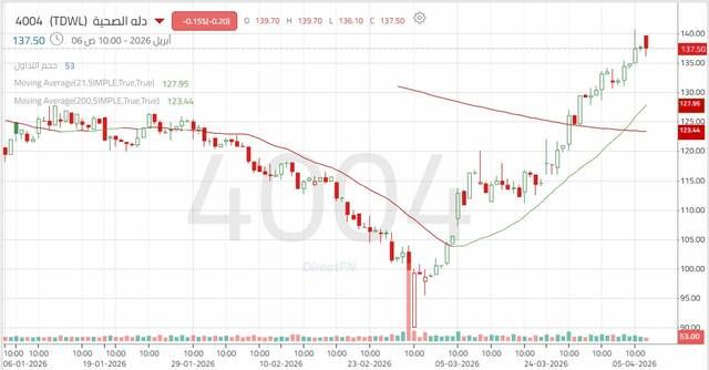 سهم "دله الصحية": تحسن فني مع اختبار حاجز نفسي هام, اليوم الاثنين 6 أبريل 2026 01:56 مساءً