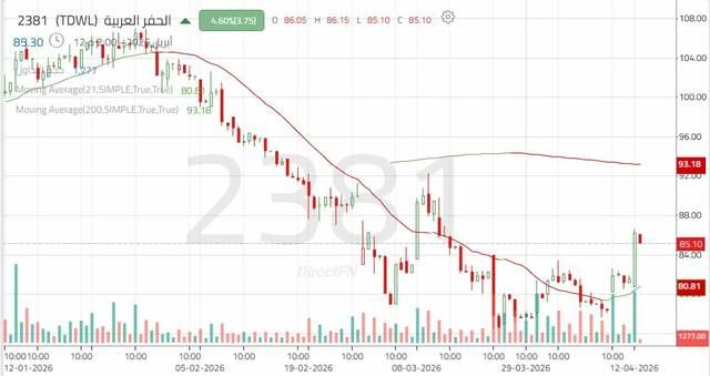 سهم "الحفر العربية" يستعيد الزخم الصاعد مع اختراق مستويات محورية, اليوم الأحد 12 أبريل 2026 02:43 مساءً
