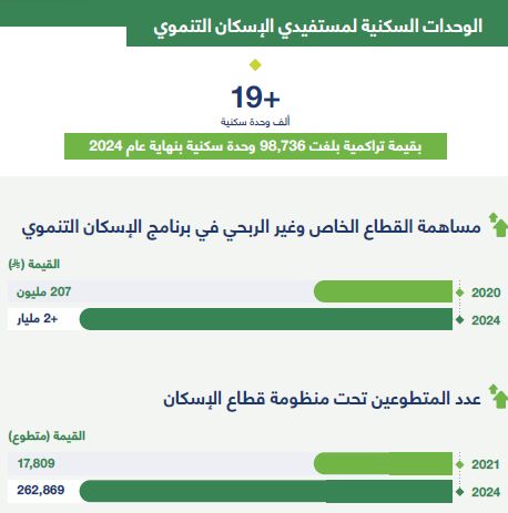 وتم تعزيز الشراكة مع القطاع الخاص والقطاع غير الربحي. ولضمان تنظيم القطاع العقاري؛ أُنشئت الهيئة العامة للعقار، وتم إطلاق منصة "إيجار" لتوثيق عقود الإيجار وحفظ حقوق الأطراف، وامتد الأثر إلى بناء القدرات الوطنية عبر تأسيس المعهد العقاري السعودي، الذي يهدف إلى تدريب وتأهيل الكوادر البشرية، وتزويدهم بالمهارات اللازمة للعمل في القطاع العقاري.