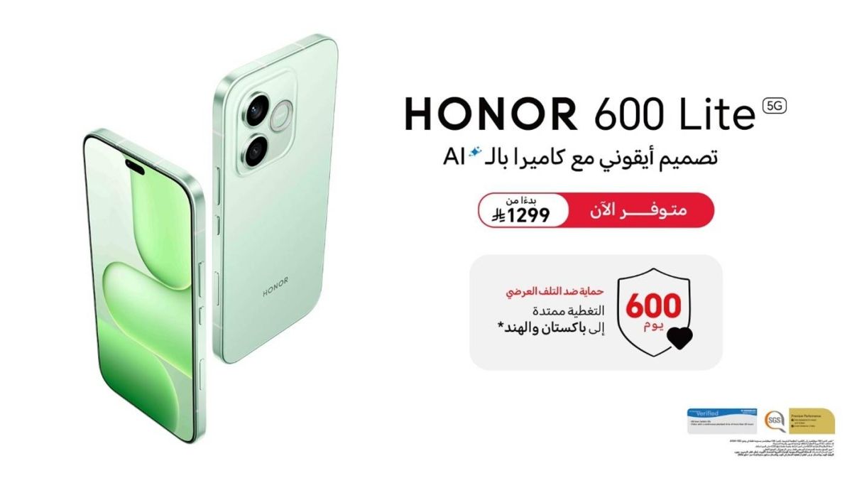 HONOR تُعلن التوفر الرسمي لهاتف HONOR 600 Lite الجديد, اليوم الاثنين 13 أبريل 2026 09:40 صباحاً